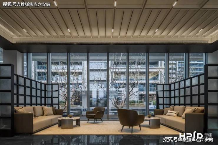 社区大堂采用黑色大理石地面,配以高级真皮座椅和半开放式休息区,营造出奢华感。带有中式元素的玻璃墙将休息区环抱于中,半开放式的结构增添了独特的东方韵味,让空间更具吸引力。细节处处体现品质,人们在此感受到舒适与优雅并存的氛围。