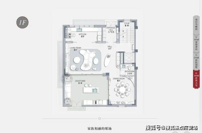 主力户型:建面约185㎡三房、235㎡四房及305㎡五房三大户型