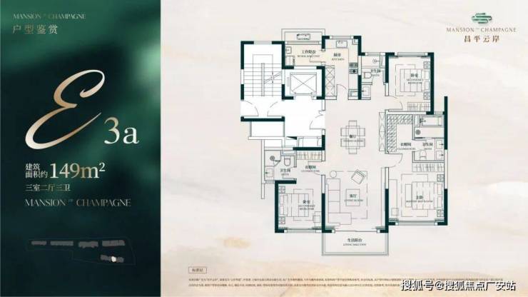 建面约149㎡3房2厅3卫户型▼
