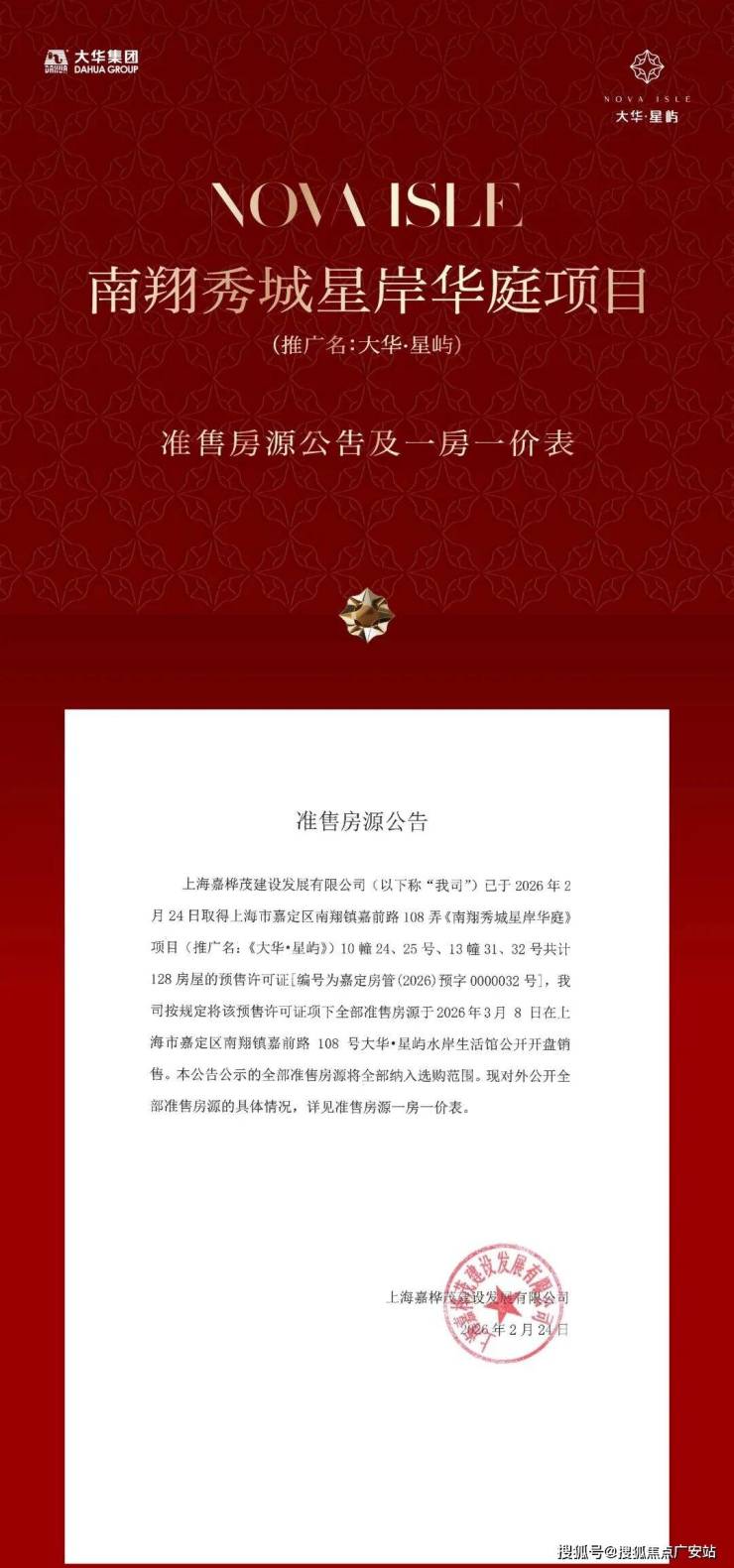 认购地点:上海市嘉定区南翔镇嘉前路108号大华星屿水岸生活馆;