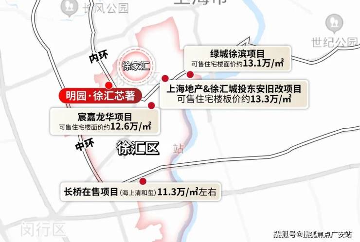 明园·徐汇芯著东侧的尚汇豪庭挂牌均价约17.1万/㎡;其他内中环的次新房挂牌均价普遍在15万+/㎡;西侧大古北的次新房,挂牌均价也达到14万+/㎡。