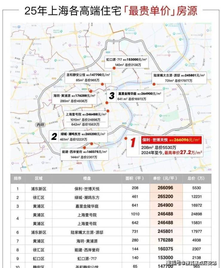 2025上海豪宅单价超20万/m²的成交量排行中,保利世博天悦甚至力压新天地、外滩、陆家嘴、苏河湾、徐汇滨江等一众热门板块新盘,问鼎上海豪宅之巅!