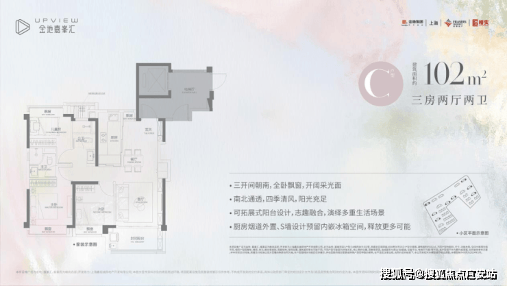 金地嘉峯汇目前在售建面约89-102㎡高配3房
