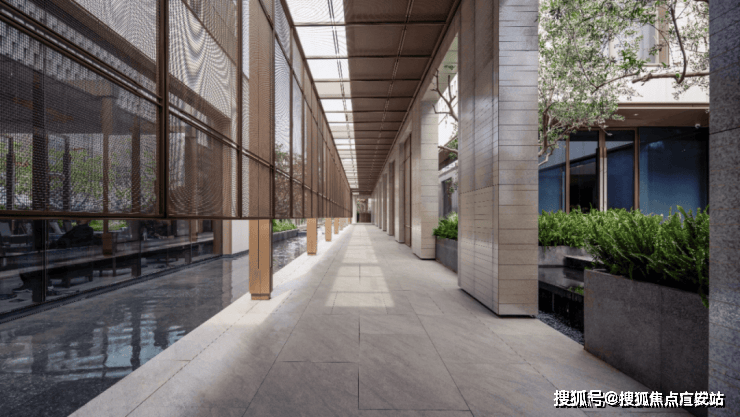 归家路上漫步于水榭光廊,阳光透过格栅在地上形成斑驳的光影,与单侧的水景波动的涟漪互动,让人在潜移默化中,获得身心的舒缓。