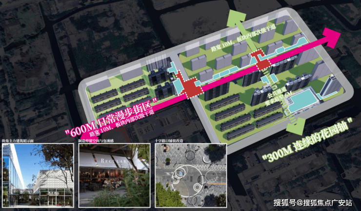 另外一方面,时代之城还规划一条约300米的连续花园轴、一条约600米的日常漫步街区。
