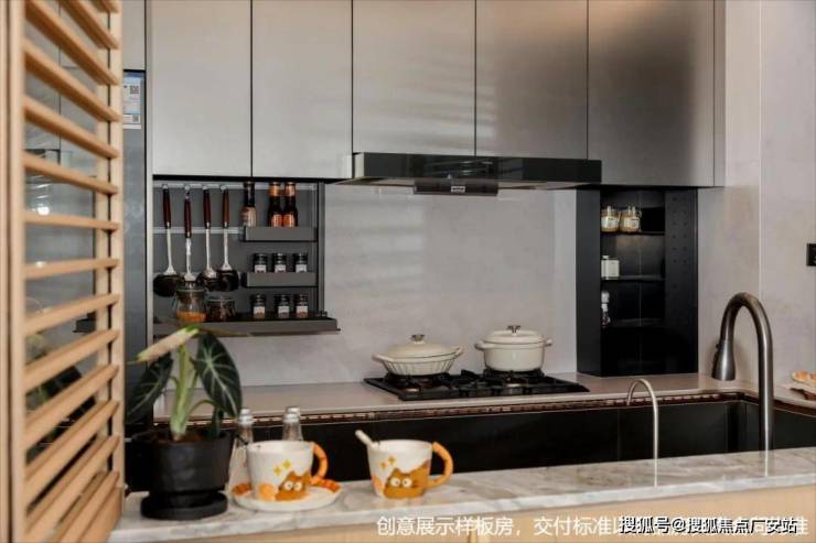 • 电动调味舱(120户型为手动下拉调味仓):隐藏调味品方便拿取,保持台面整洁;