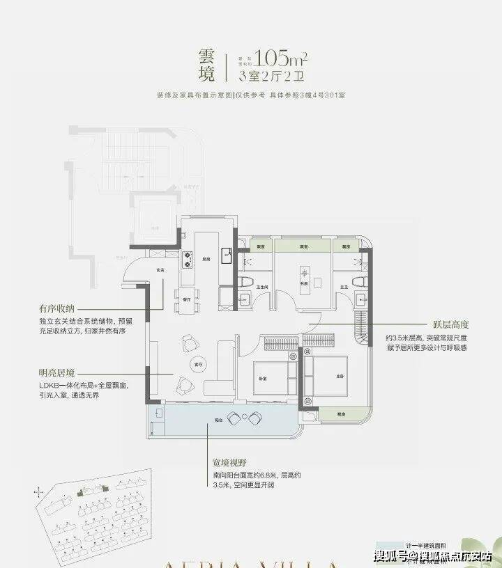 约9.8米南向面宽,配以超大尺度跑道式阳台,让室内外交融共生。