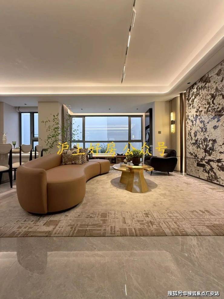 墙体采用约雪山蓝石材,搭配香槟色铝板,普拉达绿石材、安哥拉黑石材、真石漆保温一体板与大面积落地玻璃,叠水小品迎宾启幕归家礼序。景观雕塑,将“缦奢归璞”所追求的圈层礼制得以具象。敕造奢阔实景,境现嘉定主城高阶圈邻。
