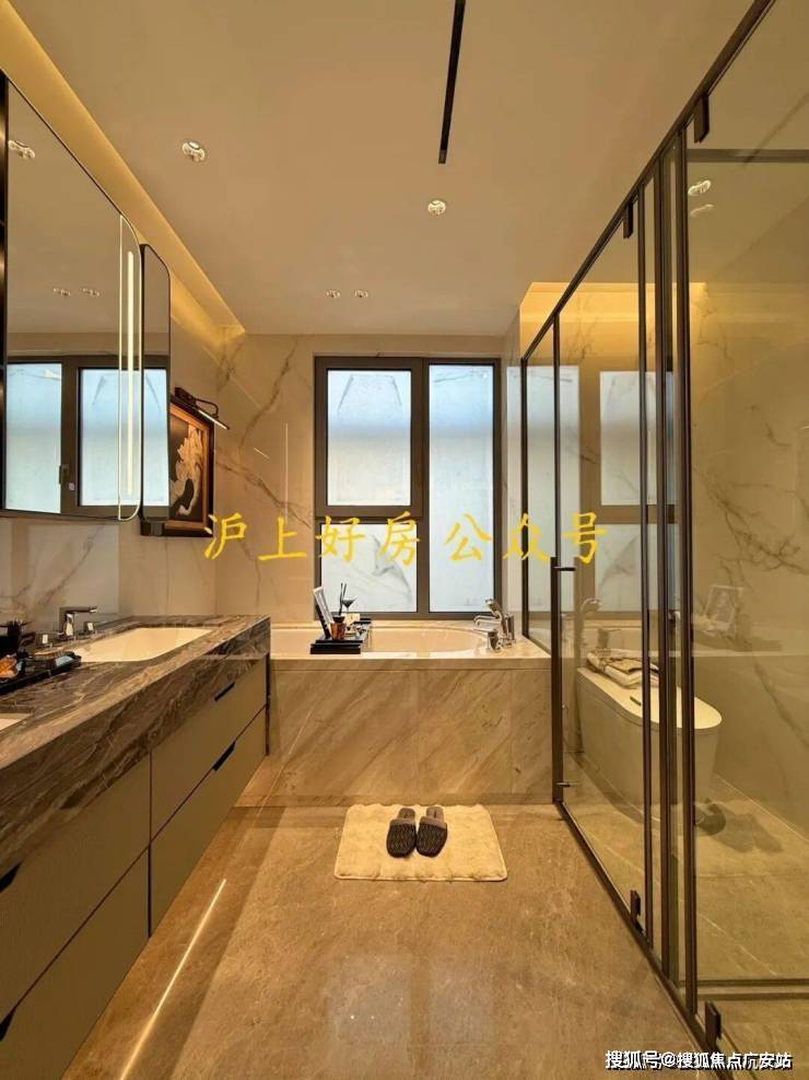 约19米四开间朝南,南北通厅设计,十字中轴洄游动线,演绎云端平墅藏品;双套房全明卫设计,大幅提升居者生活品味与格调;主卧预留步入式宽敞衣帽间,双台盆设计,浴缸冲淋设施齐备,满足男女主人各自所需。