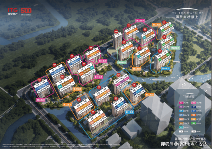 国贸·虹桥璟上本次加推收官132套房源,两栋楼的位置非常好,被水系环绕,且非常接近地铁站!主力户型为建面约105㎡3房,以及建面约129㎡4房,均价56352元/㎡。