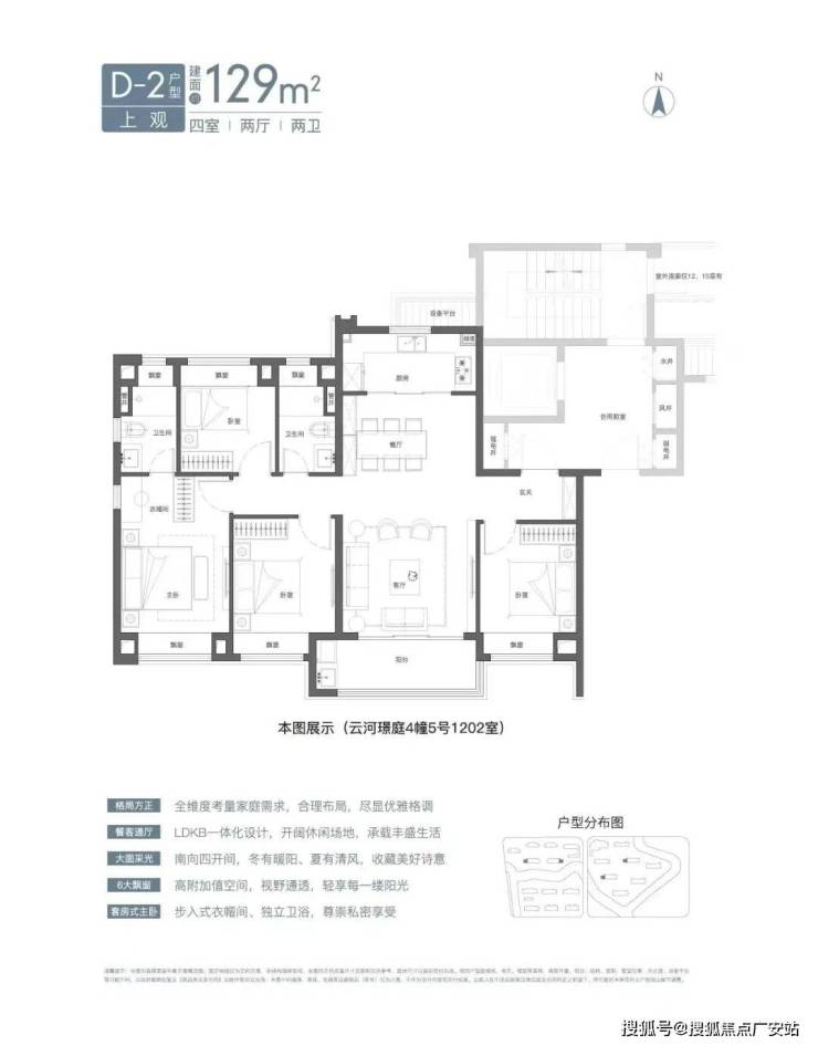 预算充足的小伙伴可以入手建面约129㎡4房2卫。