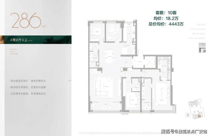 482㎡,3号楼东边套,均价18.1万,基本属于5房5卫,从这里开始,4个卧室全部套房设计,自带卫生间。