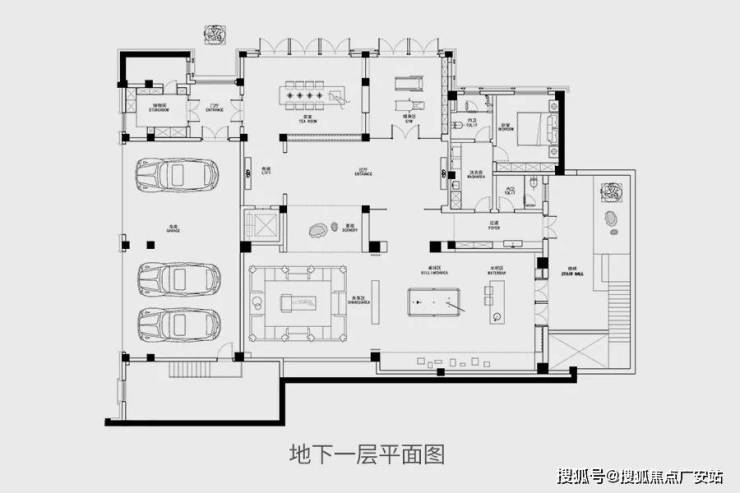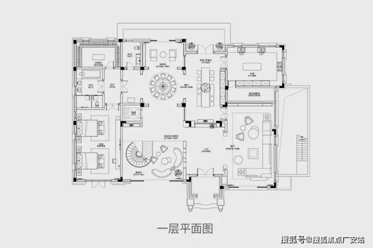 1200㎡独栋别墅,地上二层,地下一层。一层作为家庭生活的核心空间,也担负起了结构上的关联作用。设计师将居者的卧室、日常餐厨、休闲会客等功能依次铺陈。
