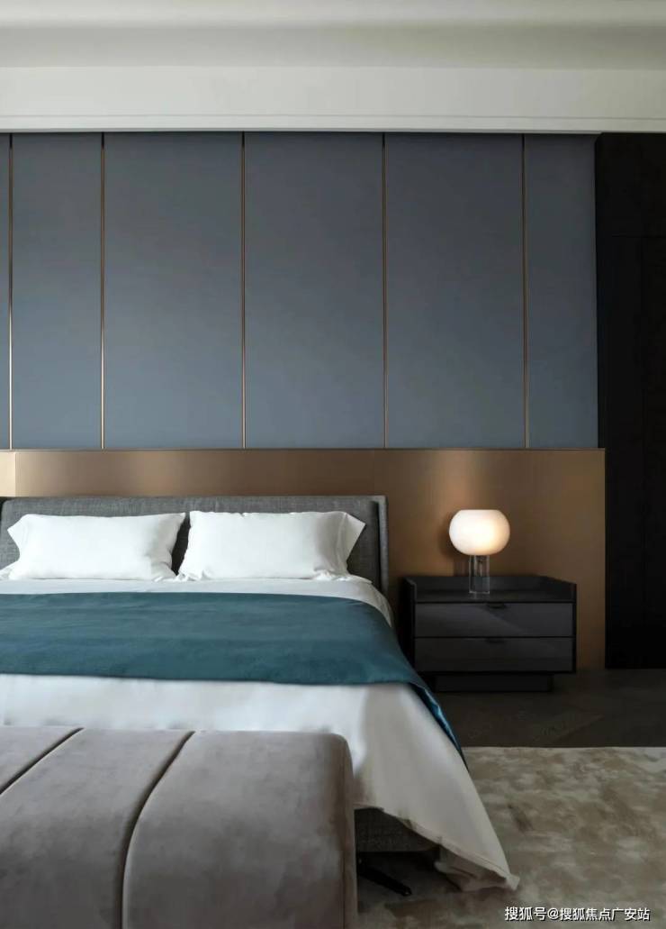 “与一层公共区域优雅的白不同,卧室空间的白我们又加了一个色调,这样会显沉稳而内敛。”设计师说道。