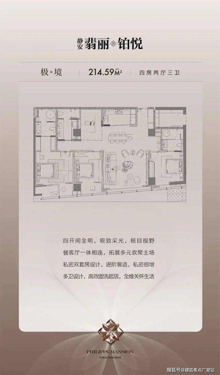 极境户型:约214㎡|4房2厅3卫(四开间+双套房)。