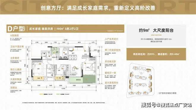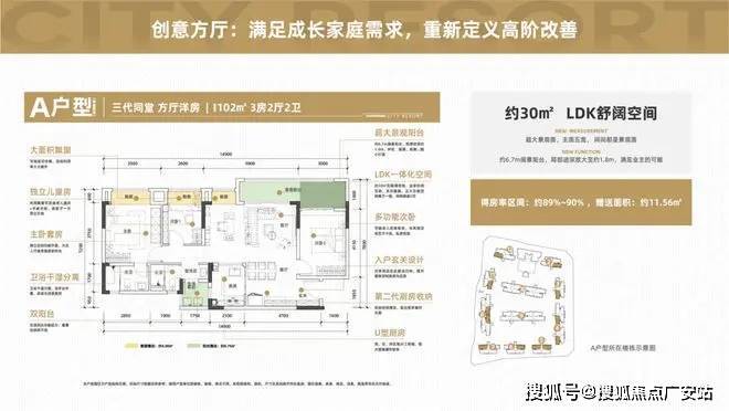 主要亮点:万科经典N+1-LDK大方厅户型+全龄段二/三代家庭生活功能+最高约90%得房率+最长约8米PLUS版景观阳台/局部放宽至2.1米+生活阳台家政化+独创社交化厨房设计(半敞开式/重庆万科首例)/U形厨房/第二厨房+超级大主卧+开敞式独立老人房等