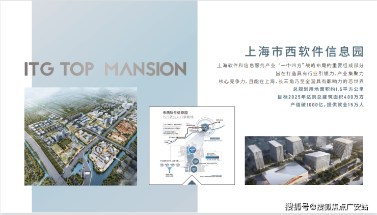 嘉松中路站科创主体是市西软件园,作为上海十三五规划重点科技园区,在青浦区十四五规划中,将成为上海软件开发和新一代信息技术的重要功能区,定位为千亿级产业园区,提供就业岗位约15万人。计划2025年预计实现建筑面积约400万㎡,经营收入达到1000亿,发展信息技术、人工智能、大数据、云计算、生命健康等多元化产业。2017年上海经信委将市西信息软件园正式纳入上海”一中四方“战略布局,成为上海软件信息产业布局中的重要一环。“一中”是以中心城区为主,“四方”指的是浦东张江科创园、闵行紫竹科技园区、静安高新科创园区、青浦市西信息软件园。