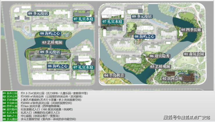 低密滨水社区:容积率 2.2,绿化率 35%-43%,双水系环绕,生态宜居