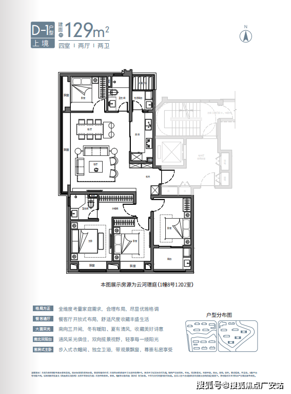 约 129㎡ 四房两厅两卫:总价580-680 万|高端改善,四开间朝南,双阳台