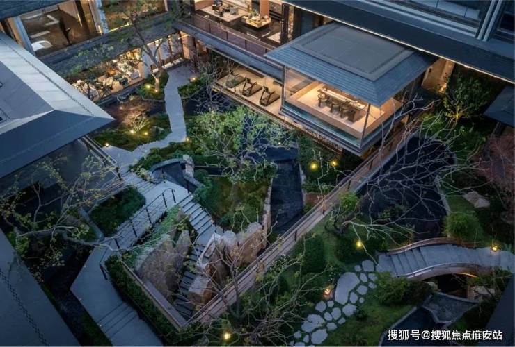 景观上,绿城·逸庐借鉴豫园的造景手法,以国际视野解构东方园林,带来叠石、景桥、悬亭等特色景观,为忙碌的身心,打造知停而行的庭园。