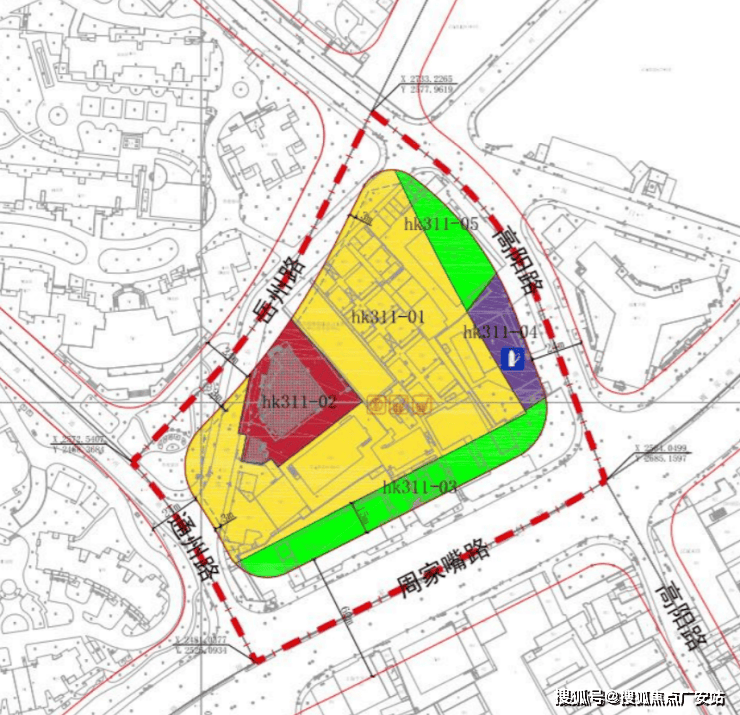 其中,hk311-01地块(135街坊——即碧云北外滩尊邸)四至范围,东至hk311-05和hk311-04地块,南至hk311-03地块,西至通州路,北至岳州路和hk311-02地块,