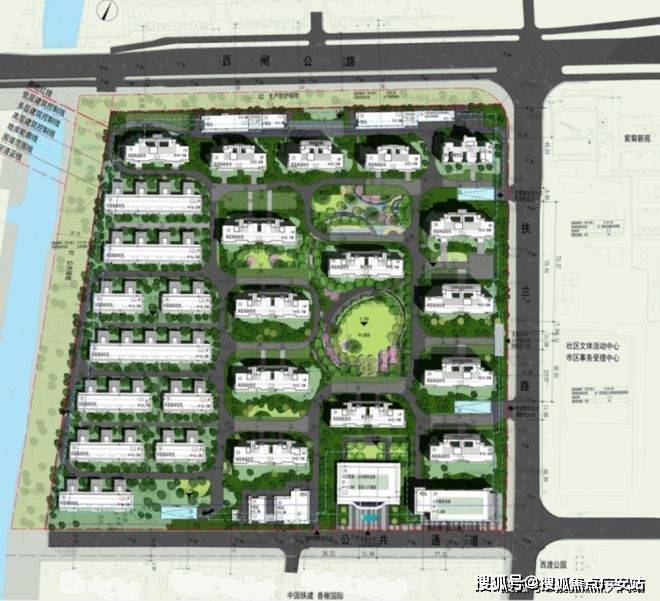 以江南人文精神为源点,打造两轴一环五进空间,江南礼序归家轴串联启迎盛礼、筑阙会友、归家华堂等5重礼制,尊崇归家;健康运动轴以24小时跑道为社区活力生活环,串联儿童乐园、长者康养、疗愈花园等10大生活场景,营造全龄全时的江南诗意生活