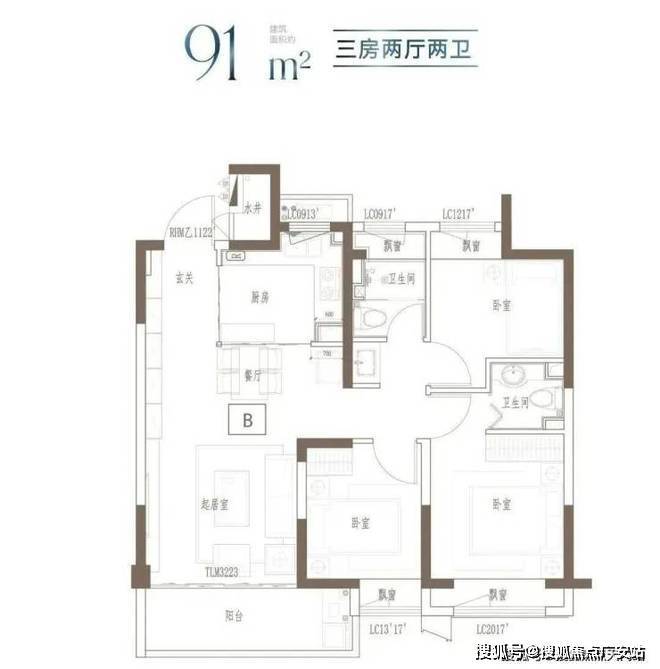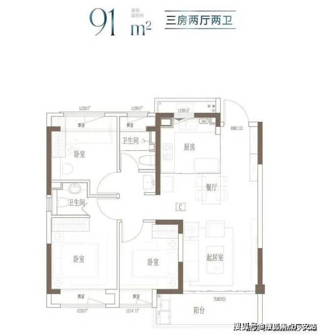 建面约91㎡ 3房2厅2卫▼中铁建熙语售楼处电话:400-998-7894(已认证)
