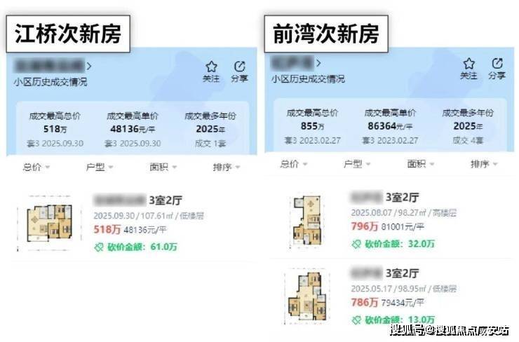 但现在再看,江桥次新二手房成交价只有4.8万/㎡,反观前湾次新二手房还能稳在8万/㎡!