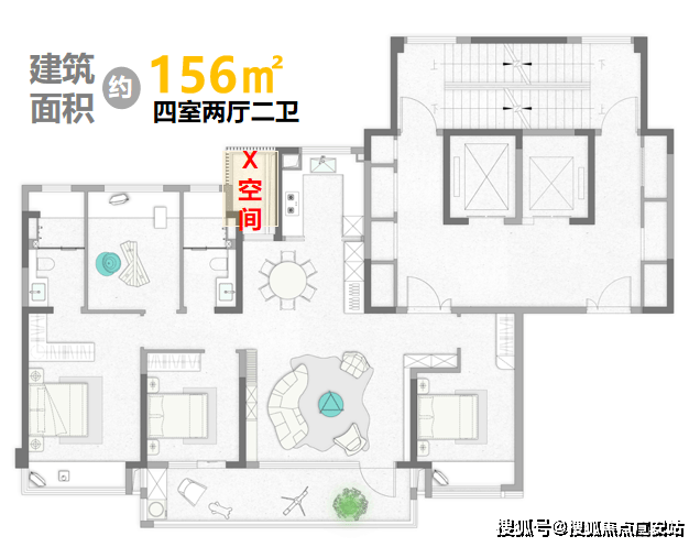 建面约156㎡户型