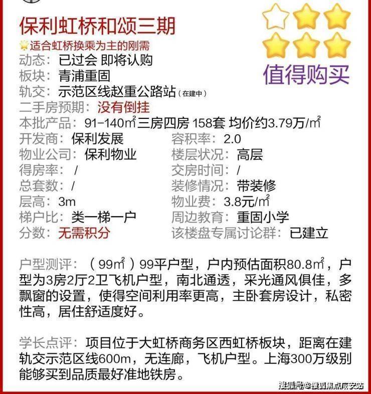 最新消息,青浦重固「保利虹桥和颂」三期已过会,即将认购!推出建面约91-140㎡三房四房,均价约3.79万/㎡!