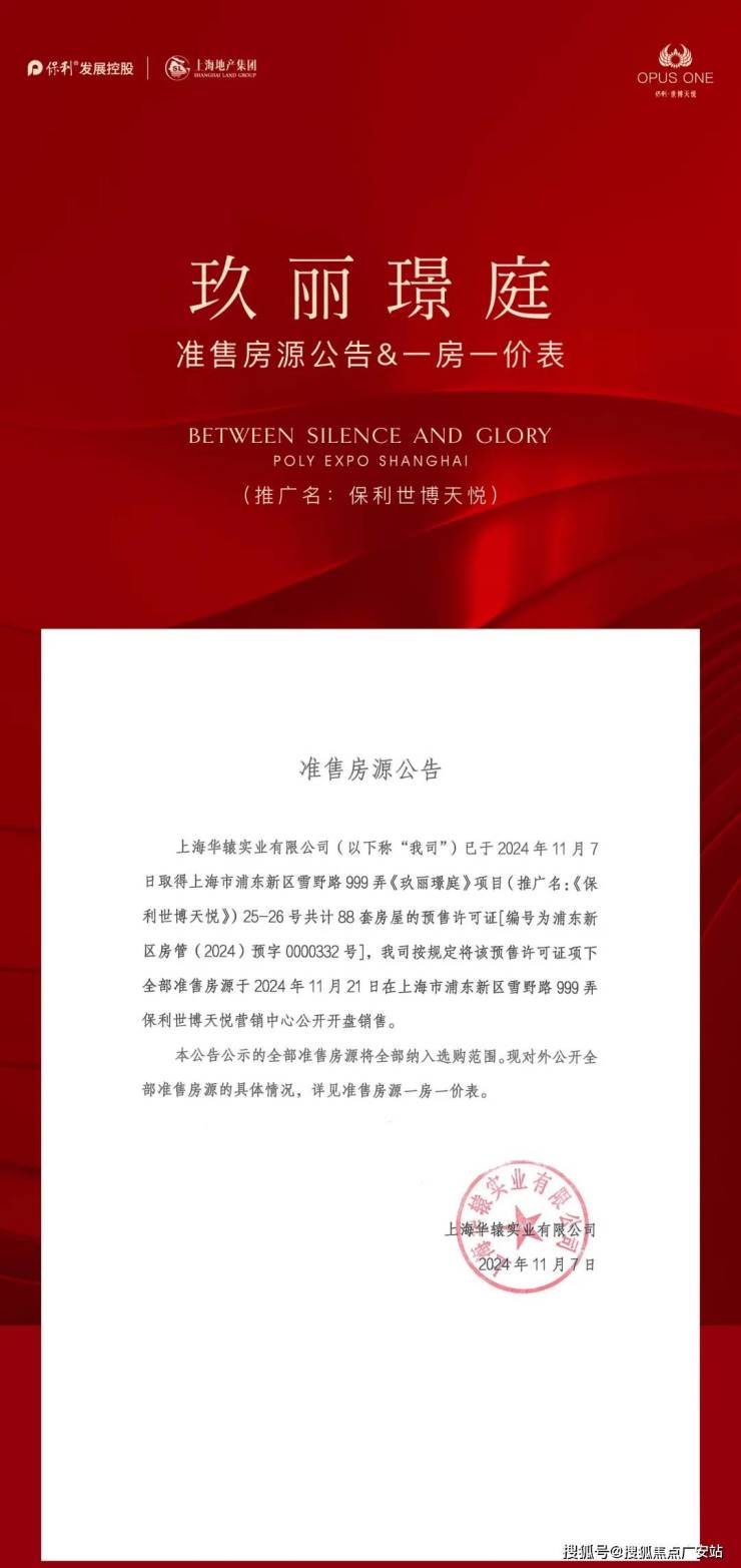 1、项目推广名为“保利·世博天悦”,地名核准名/备案名为“玖丽璟庭”,开发公司为:“上海华辕实业有限公司”;预售证号:浦东新区房管(2024)预字0000332号;2、本资料为要约邀请,不作为要约或承诺;3、相关宣传内容不排除因政府相关规划、规定及出卖人分期规划、未能控制等原因而发生变化;4、买卖双方的权利义务以双方签订的商品房买卖合同及其补充协议、附件等书面文件为准;5、本宣传材料所涉及户型仅供示意参考,具体以政府部门最终审定的图纸和销售合同为准,本资料所涉及面积皆为预估面积,相同户型单位因楼栋、楼层、单元等差异,局部结构、形式、面积、装饰等可能有所不同,且预估面积与实际面积可能存在差异,面积最终以房管局测绘为准。户型图中装修、家具、电器等设备仅为示意,不属于交付内容和交付标准,实际部品的选型和房间空间尺寸根据户型情况,略有差异,以现场实际为准;6、本宣传资料中涉及的价格、折扣、付款方式等信息,因销售时间、户型楼栋、楼层、方位等不同有所差异,以双方签订的商品房买卖合同及其补充协议、附件等书面文件为准;7、本资料所发布的内容为2024年11月的信息,敬请留意最新资料。