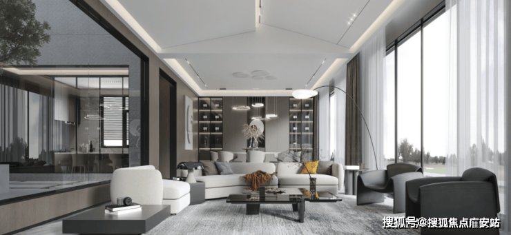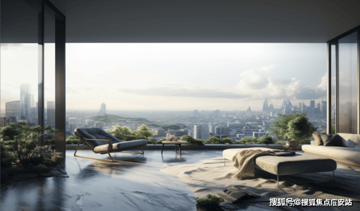 品质进阶增配举措2:中央会客厅,坐拥无遮挡观景视野,休憩、会客全能。尽展楼王风范;