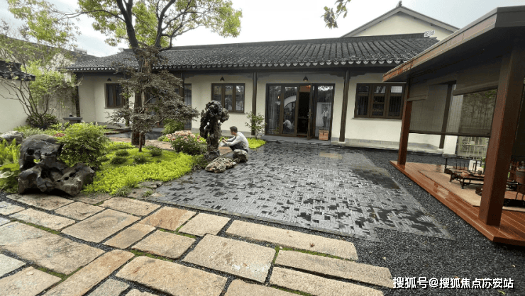 4、 公区石板铺地、精致景观(老石头、花岗岩、PC砖)。