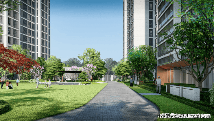 接着,沿中心景观轴前行,一片翠绿盎然的阳光大草坪赫然呈现,它与周围特色景观组团相互映衬,仿佛置身于开阔的度假胜地。
