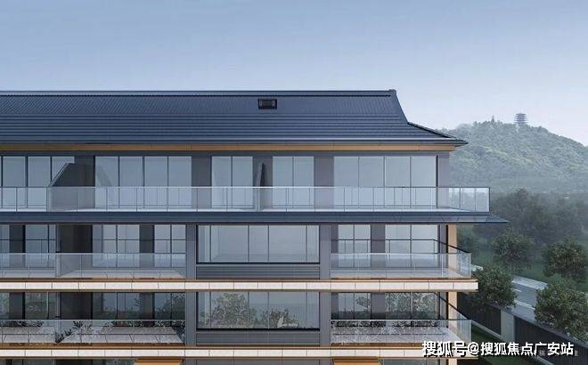 颂香望庐的建筑外立面沿袭传统宋式美学,采用四面铝板+三玻两腔玻璃立面,搭配爱马仕灰和蓝眼睛石材,古典但不失现代质感。