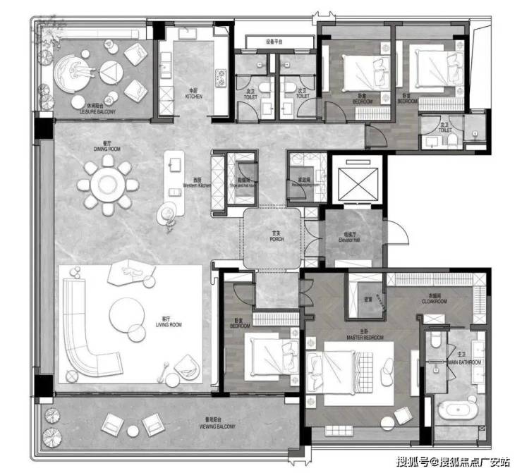 厨具方面,油烟机、灶具、洗碗机、烤箱、甚至一般不作为交付的冰箱,均采用了国际知名品牌——美诺(或同等档次),这样的五件套配置放眼全市豪宅都非常罕见。