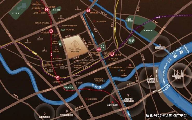 项目直线距苏州河约1.5公里,直线距黄浦江约3公里。3公里范围内,能够享受苏河湾、人民广场、外滩、北外滩、大宁等浦西九大核心商圈的资源,生活便捷程度显而易见。