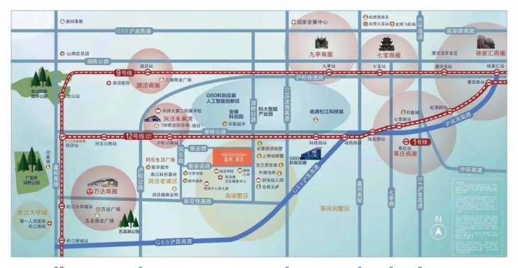 其中作为项目目前更为重要的交通干道,沪松公路和沈海高速,可以自驾快速到达虹桥、七宝、漕河泾已经徐家汇等多个金融中心和商圈。对于有车一族来说,上下班再也不必担心拥堵。