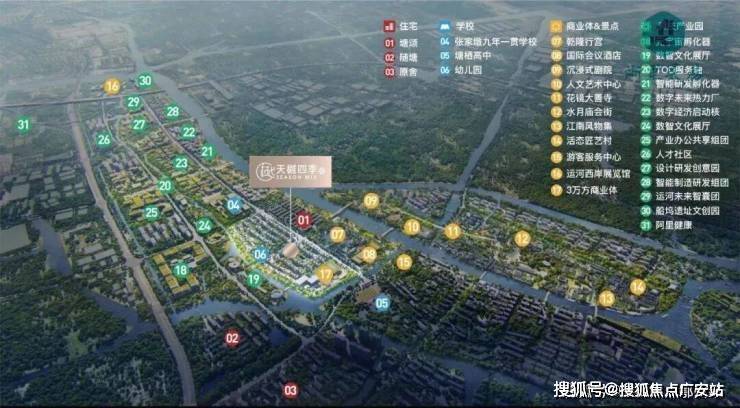 天樾四季城地处秋石中轴与运河发展轴双轴汇心的区域,绿地&合景&招商联袂巨著,怀着“尊重传统,珍视未来”的初心,萃取京杭运河元素,以“骨子里的杭州”为概念,打造约30万方未来繁华城市中心体,用古典穿插现代的手法更新杭州这座城市的面孔。两条天然水系围绕,打造约0.6万方开放式滨水商业街区、约1万方高端酒店、约3万方MALL、现代主义低密住区等多业态MIX,构筑城北人居新天际。