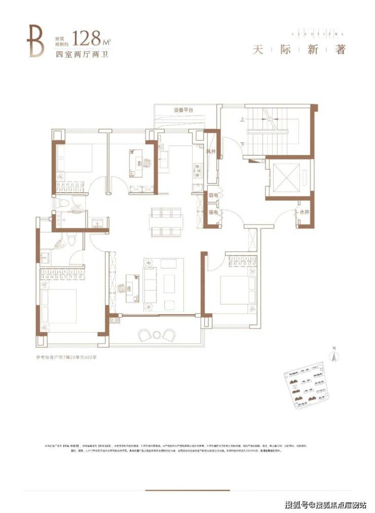 除了建面约170㎡四房,项目还有少量建面约107、128㎡房源在售。
