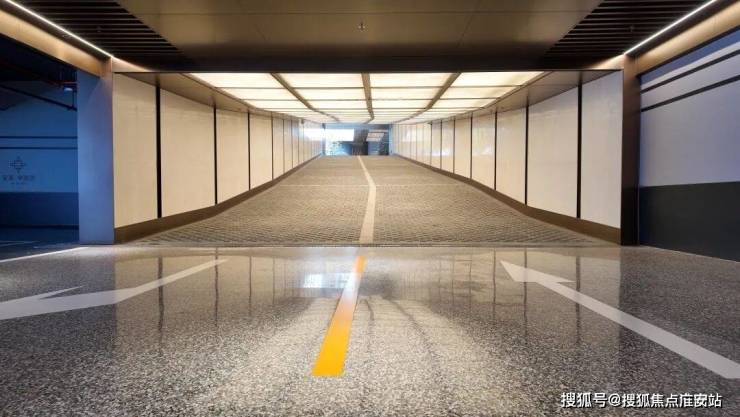 地面采用钢纤维混凝土基座与精磨石面层,这类做法通常出现在机场、商业综合体等高承载空间,不仅更耐磨、防渗、抗压,也让车行时的声响变得沉稳,不会产生廉价的震动颗粒感。
