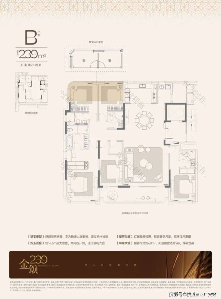 1#:主力建面约239方,五房两厅四卫格局,控总价,尺度感和功能兼具。