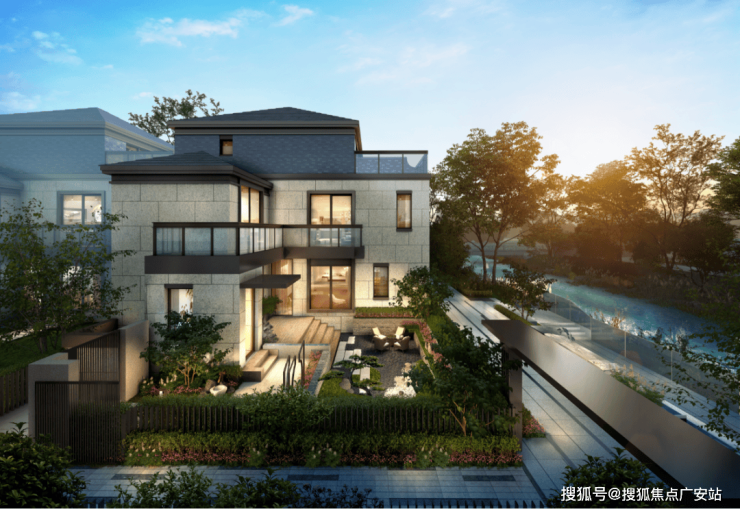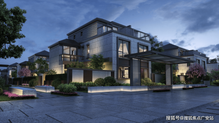 【上实·和风院】建筑外观是 新中式格调,以黑色面瓦为黛顶,整体线条简洁明快。