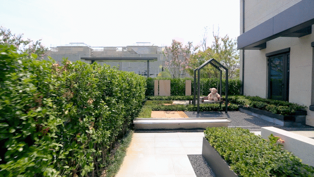 庭前绿地的面积有约40-60㎡,不管侍弄花草、晒晒太阳,抑或叠山理石,都足够了。