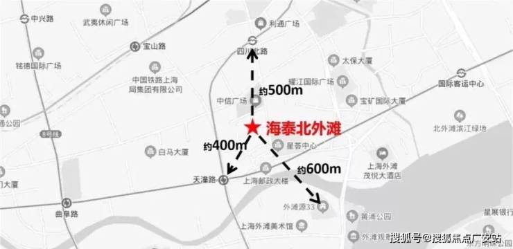 「海泰北外滩」位于虹口区四川北路塘沽路(江西北路以东,塘沽路以南,四川北路以西和规划七浦路以北),距离外滩源仅有600米。