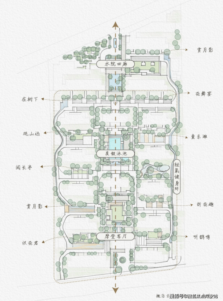 并打造东西区双庭前水景+东区泳池+西区中央草坪。