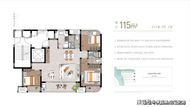 2、(方正)户型方正,高得房率,超12米三开间朝南,动静分区,流畅居家动线;