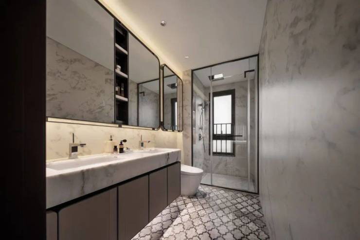 细节方面,主卧套房设计,保证了私密性。主卫的双台盆设计更是相当贴心。能实现男女主人共同洗漱的温馨场景。