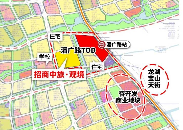 整个招商中旅·观境步行范围内,享受总体量约25万方的招商花园城X+约14万方的龙湖宝山天街+六块的待开发商办用地。