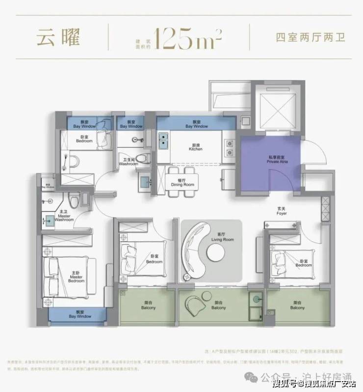 中国铁建·西派云间售楼处电话:400-998-7894(预约热线)建面约125㎡为松江板块罕见的四开间朝南三阳台户型,三开间卧室朝南,搭配多阳台与飘窗,采光通透。一梯一户同样赋予独享梯厅的尊崇体验。空间上,约3米层高营造大平层气场。横厅连接近10㎡朝南阳台,兼顾生活与观景;北向约3.85米面宽餐厅与厨房等宽,备餐时可与家人互动。主卧南向超大景观飘窗搭配全明主卫,北次卧约9㎡可灵活改造,满足多元需求。